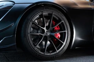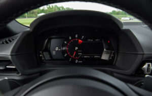 El diseño aerodinámico incorpora un alerón trasero de fibra de carbono, spoilers inferiores y una toma de aire funcional en el capó para mejorar la estabilidad y refrigeración. Además, el chasis ha sido reforzado, el diferencial trasero recalibrado y los frenos Brembo actualizados para un mejor desempeño en circuito